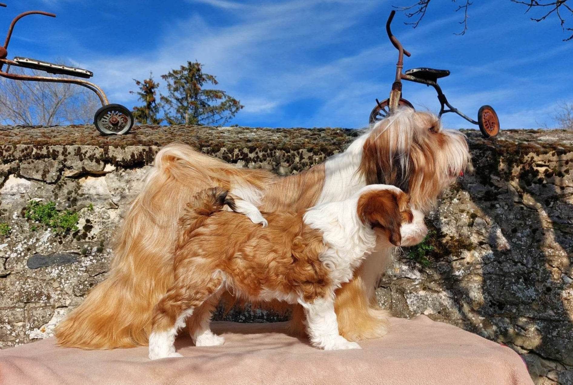 Dysplasie, Patella, DNA Untersuchungen: HD-A1 (HD frei), ED/Patella-0, NCL – frei, PRA3 - frei; PLL – frei, CCL - frei; rcd4 – träger, Pituitary Dwarfism - frei